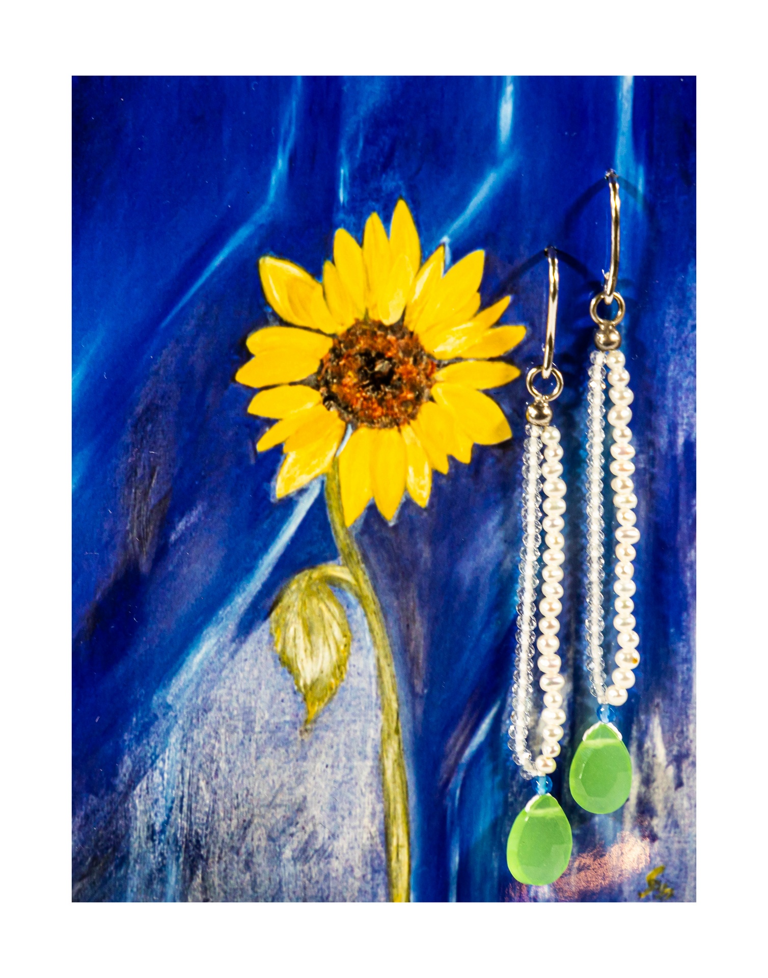 OS20 Süßwasserperle, Bergkristall, Chrysoprass, Achat blau
